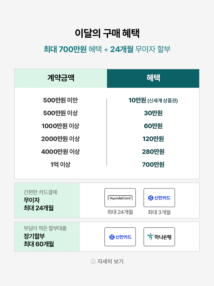 금액 대별 할인으로 최대 700만원 할인 혜택까지 드립니다