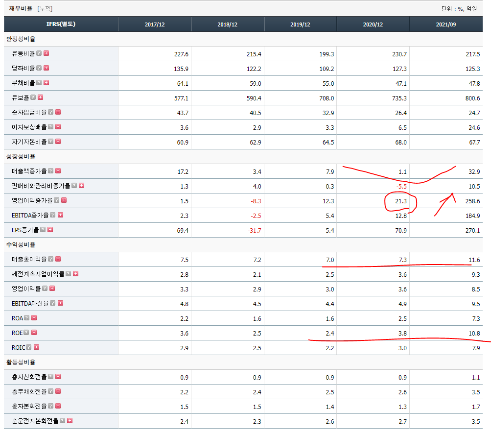 영익이 상승 했음에도 불구하고 부채 비율이 높네요....대출로 재료 사는가요...
