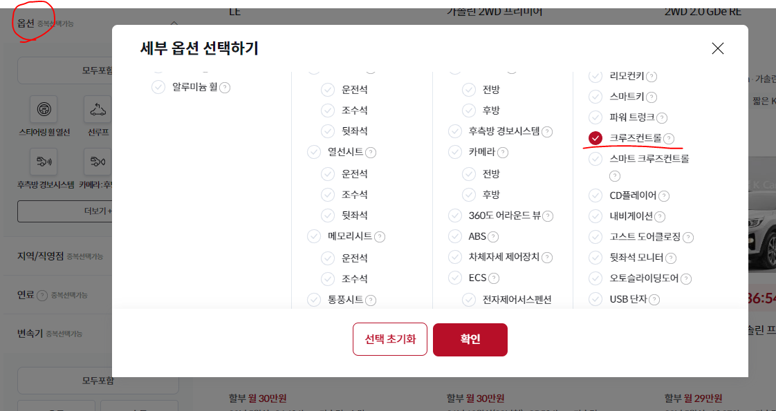 - 옵션중에 크루즈를 꼭 넣습니다.(장거리 출장에 필요합니다.)