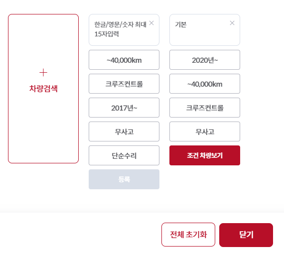 간편검색으로 차의 선택을 수월하게 할 수있지만 추천하지 않습니다.