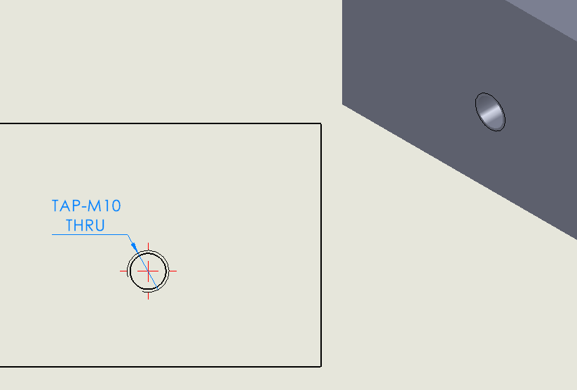 위에서 홀 경을 M10사이즈(8.5mm)에 맞게 뚫지 않았다면 가장 근접한 사이즈로 TAP이 표현됩니다.