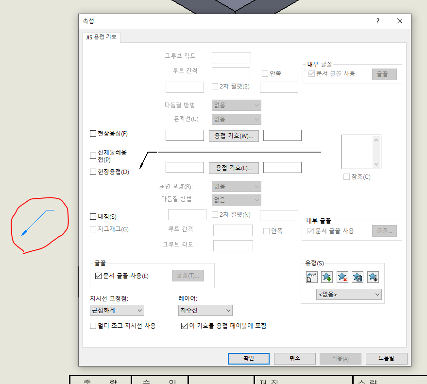 근데 초보라서 용접을 모른다... 그럼 현장 용접(F)으로 두고 도면을 작성하면 됩니다.