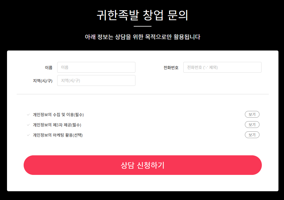지금 귀한족발 창업문의 상담신청을 해보세요