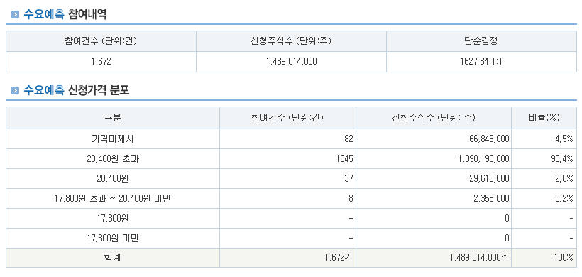 # 결론 : 주식을 배정 받지 못하셨다면(균등배정이 아니라면) 확정 공모가(44,000원)에 들어가 보시는 것도 나쁘지 않을 것 같습니다.