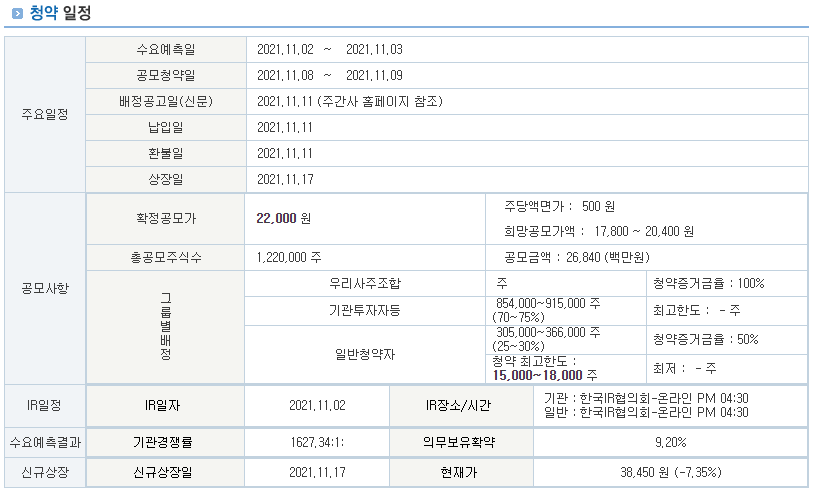 확정 공모가 22,000원
