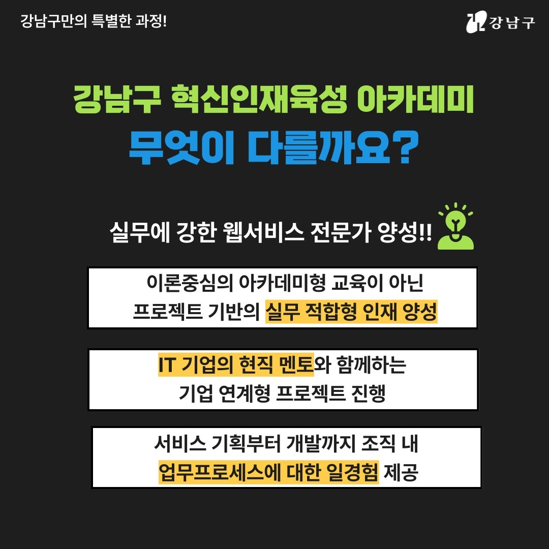웹서비스 개발자, 기획자를 꿈꾸는 강남구 청년이라면 누구든!