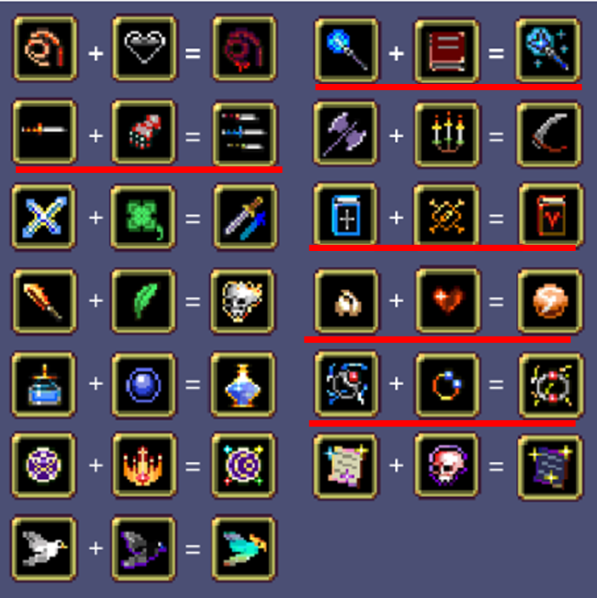 아래그림과 같이 아이템을 9개 이상 조합하면 궁극의 무기를 만들수 있으니 참고 바랍니다.