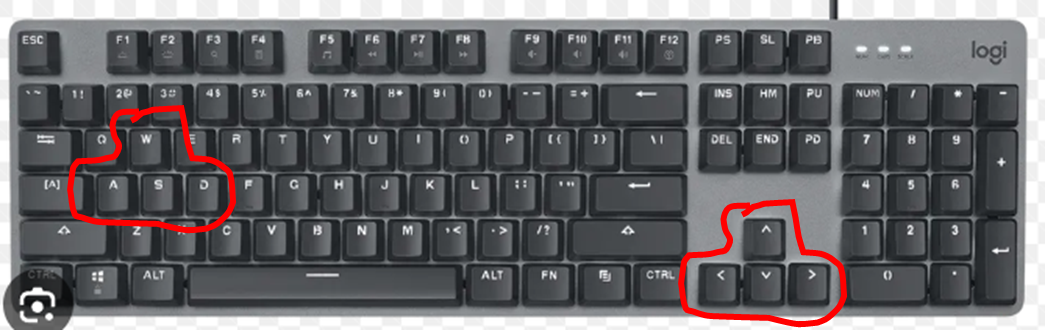 키보드 A, S, D, W 또는 화살표 방향입니다.