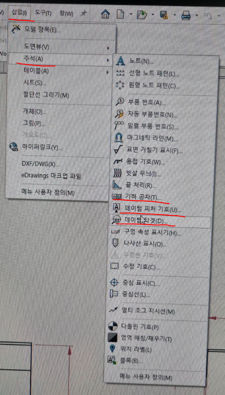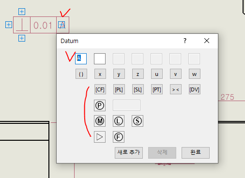 기하공차 기입하기 전에 데이텀이 필요하다면 데이텀 먼저 삽입 해 봅시다