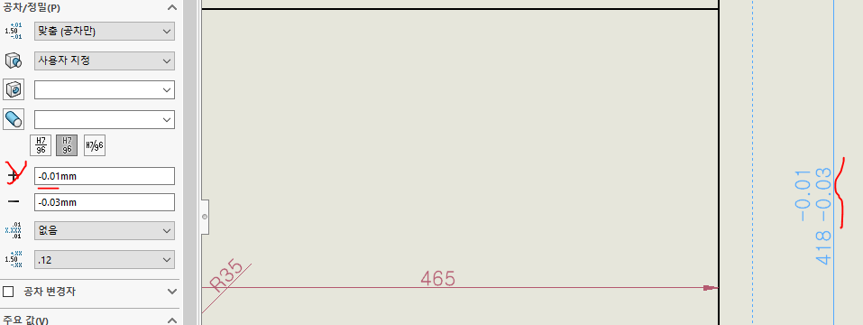 치수에 공차 넣는 것은 너무 쉽습니다.