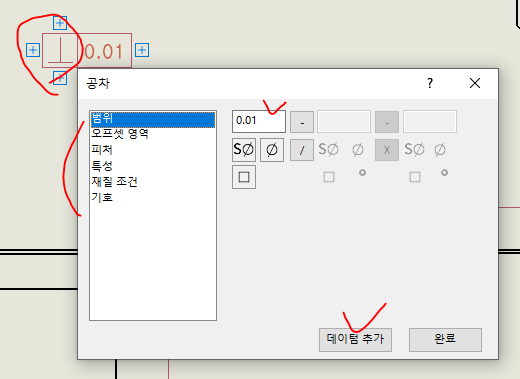 우리가 필요한 기하공차, 데이텀이 있음을 확인 할 수있습니다.
