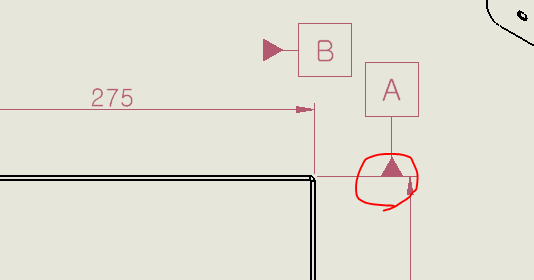 치수선에 클릭하면 자동으로 접지가 되고 데이텀 기준을 위로 할지 아래로 할지 커서를 옮겨서 클릭하면 됩니다.