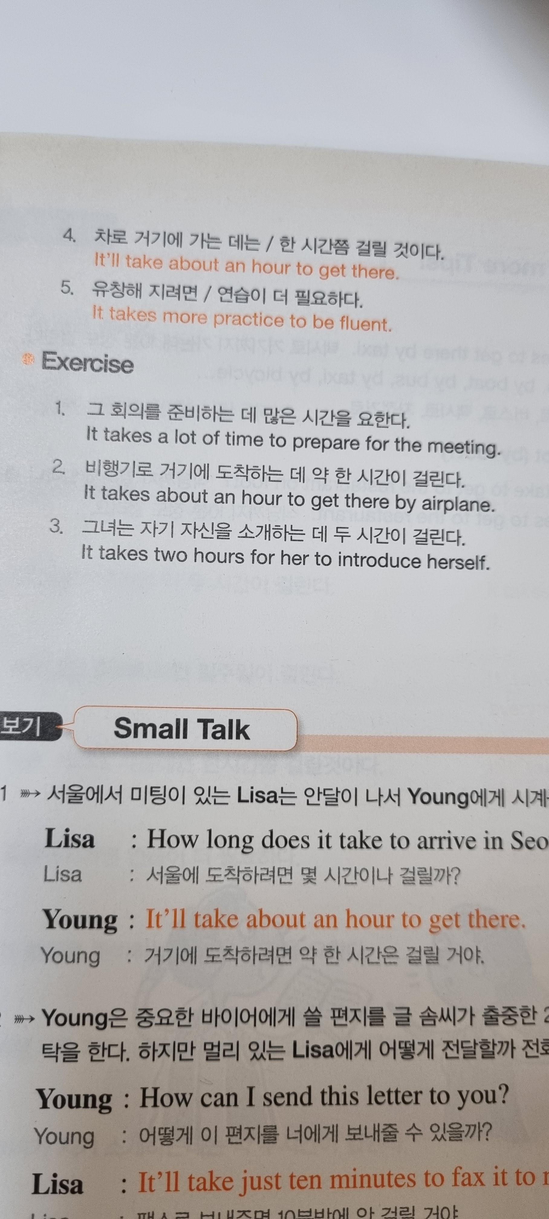 오늘의 영어 it takes about an hour to get there 거기로 가는데 약 한 시간 걸려요