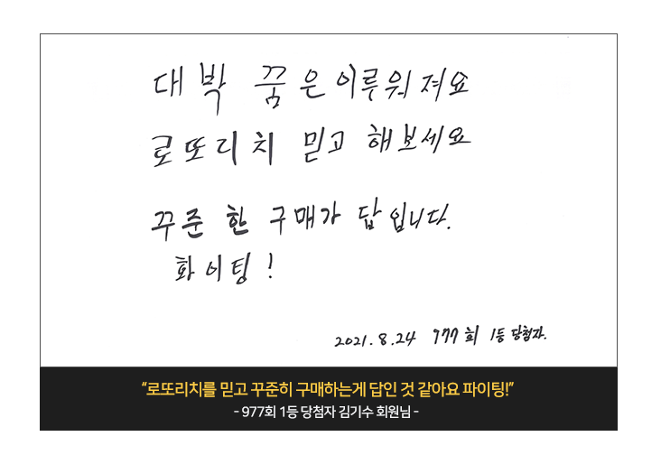 그는 “4~5년 전에 분석된 번호로 1등에 당첨되었다는 사람들의 사연을 보고 로또를 시작하게 되었으며, 사연에 보면 포기하지 말고 꾸준히 하라는 내용이 있었는데 그 말이 맞았다”고 전했다.