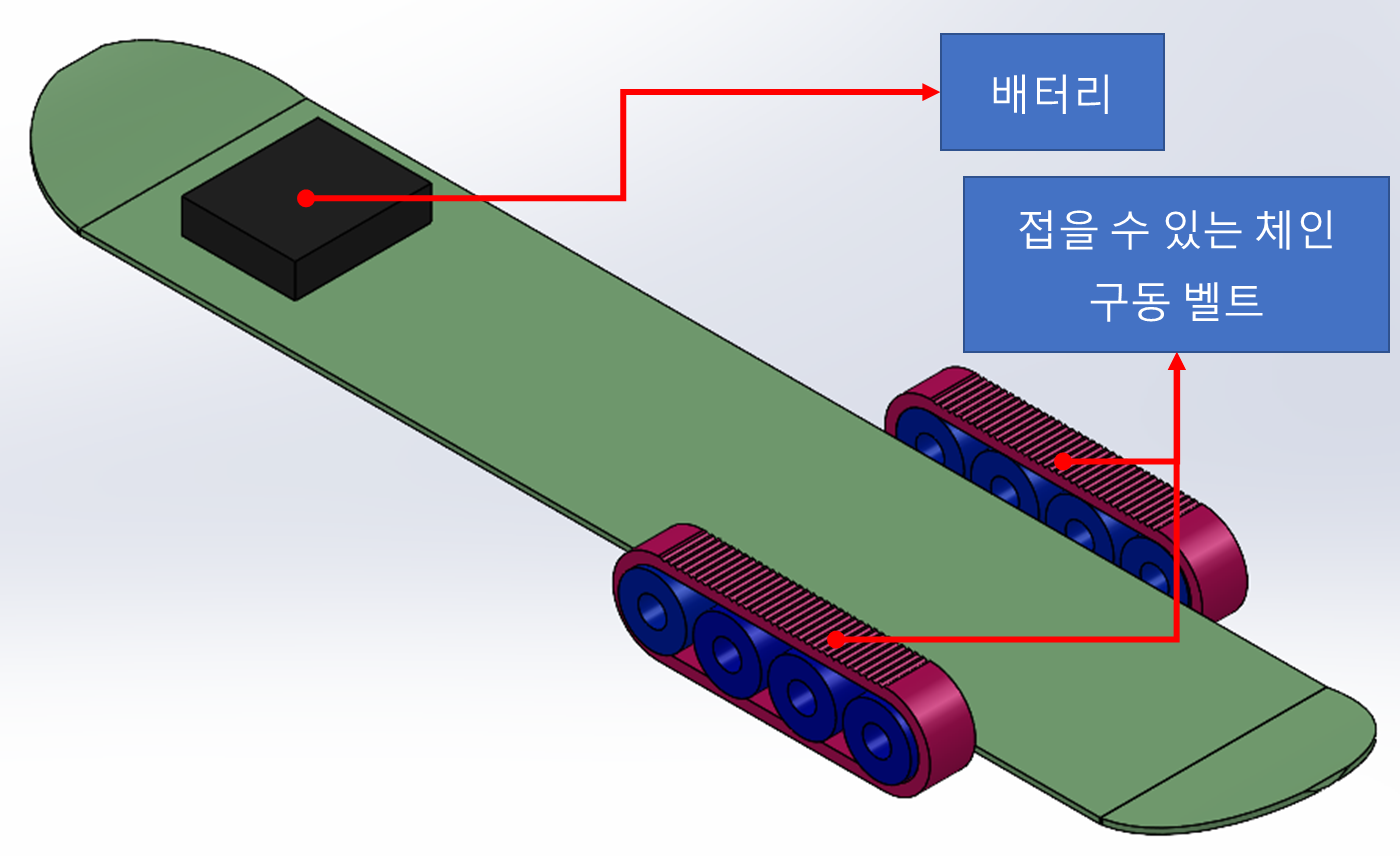 스케이트 보드든 스노우 보드, 빌보드(?)든 중력의 힘과 가속에 많이 의존 하다 보니 높은 곳으로 가기 위해 리프트를 타지 않는 이상 올라 가면서 진을 다 뺀다....그래서 아이디어를 생각 했다....전기의 힘으로 움직이는 전동 스노우 보드....내려올 코스를 전동의 힘으로 올라가서 구동 벨트는 분리 또는 접어서 내려오면 스릴 만점, 재미 만점~!!!!!