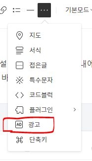 참고 사항) 글을 다 적고 나서 광고를 넣지 않았다고 당황 하지 마세요.... 해당 글을 수정 후에 광고 넣고 다시 등록하시면 됩니다.