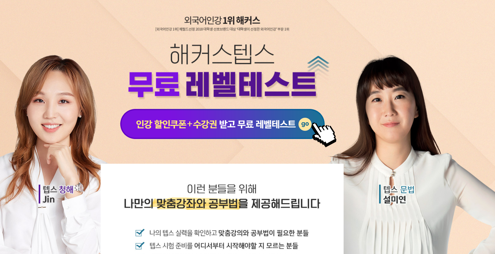 텝스 무료 레벨테스트 참여하고 맞춤 텝스인강 추천받자