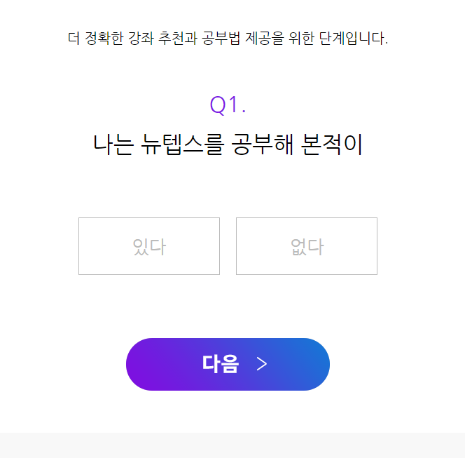 공부법 제공을 위한 단계(레벨 테스트 아님) 공부법 체크 단계 이후에 레벨 테스트 합니다.