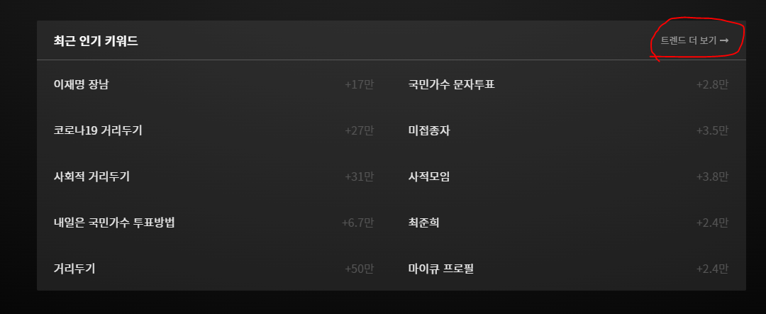 최근 인기 키워드는 실시간으로 변경되니 내가 잘 아는 주제가 나타나면 클릭하십시오