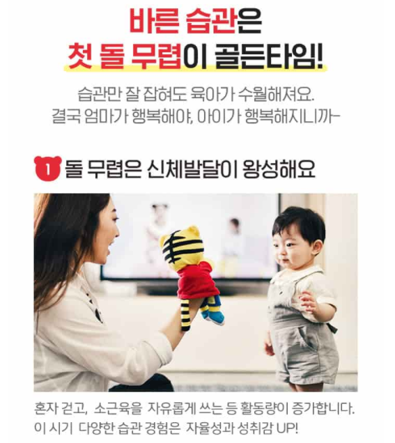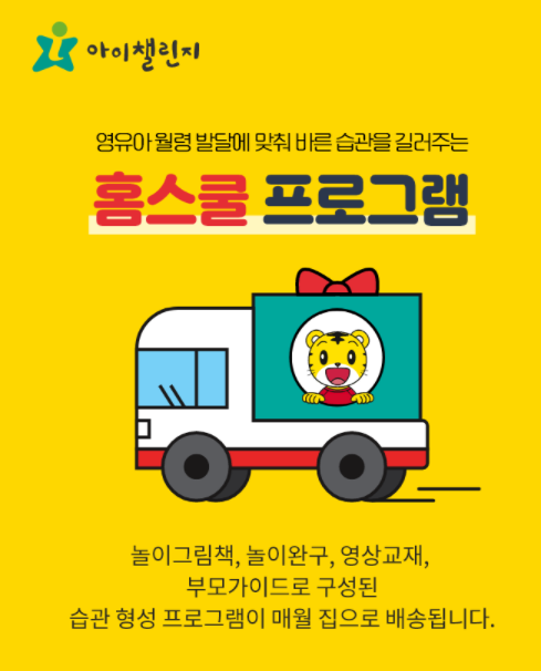 영유아 월령 발달에 맞춰 바른 습관을 길러주는 홈스쿨 프로그램 놀이그림책, 놀이완구, 영상교재, 부모가이드로 구성된 습관 형성 프로그램이 매월 집으로 배송되는 아이챌린지 첫 돌부터 시