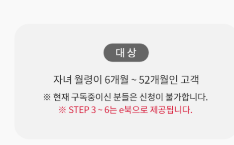 대상 : 자녀 월령이 6개월~ 52개월이하 고객 (구독자 제외)