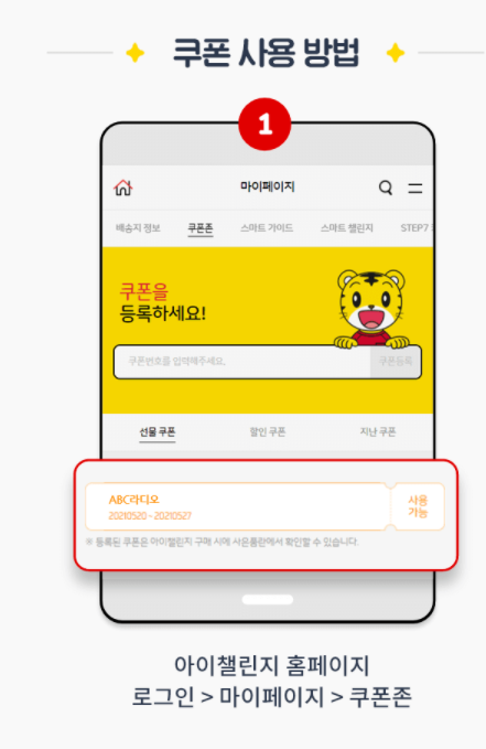 아이챌린지 홈페이지에서 결제시 쿠폰사용 가능합니다