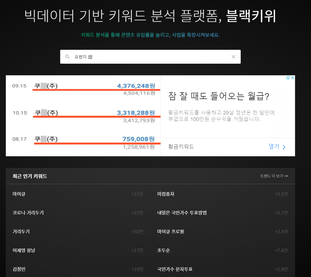 블랙키위 - 키워드 검색량 조회, 분석 (blackkiwi.net)