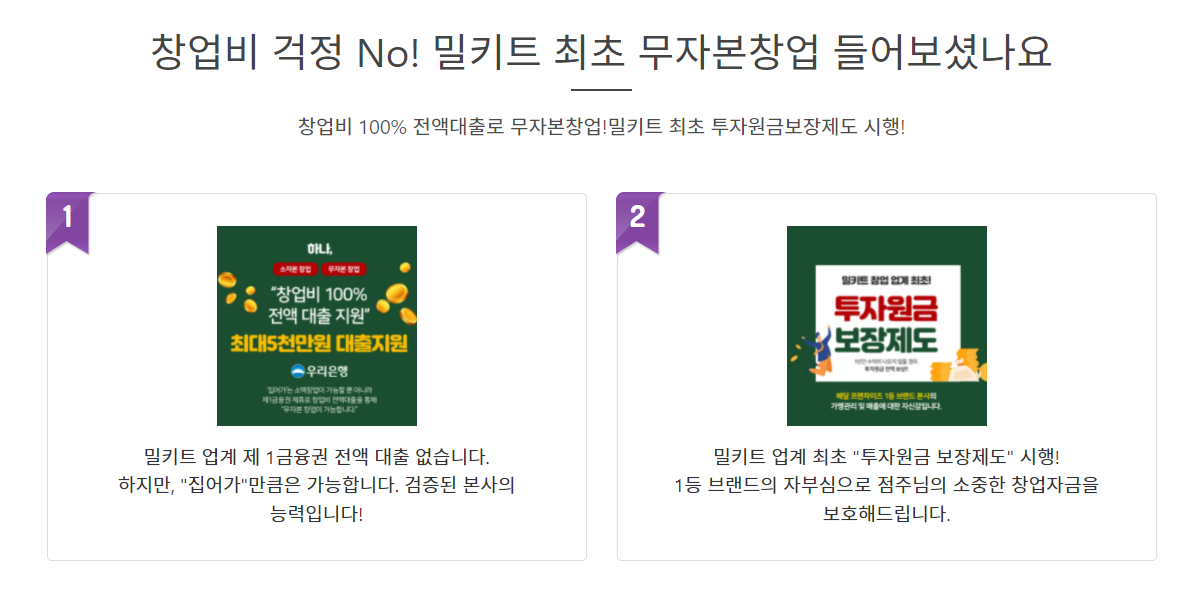 밀 키트 업계 최초 투자원금보장제 실시, 점주님의 소중한 자본금을 보호해드립니다.