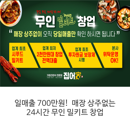 배달 프랜차이즈 최단기간 100호점 돌파에 빛나는 가맹본사의 체계적인 관리시스템이 뒷받침된 무인 밀키트 창업, 집어가!