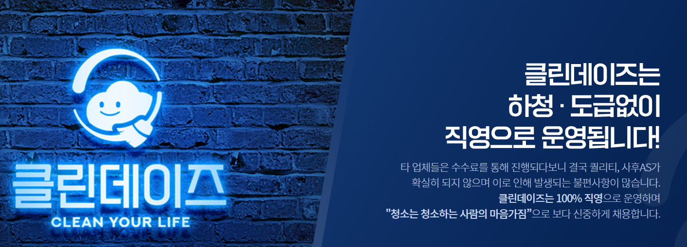 -클린데이즈는 하청, 도급없이 직영으로 운영됩니다.