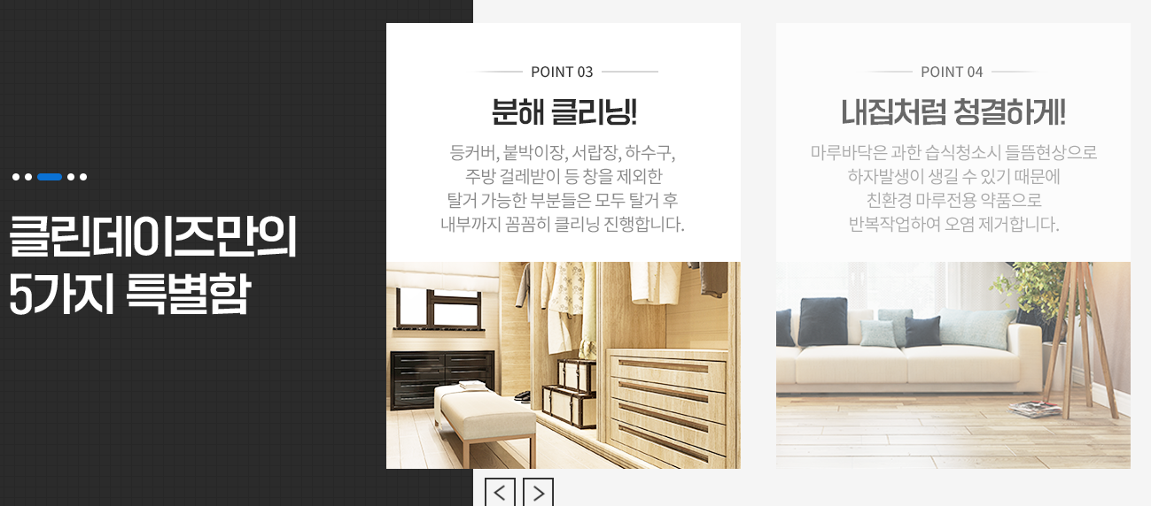 -등커버, 붙박이장, 서랍장, 하수구, 주방 걸레받이 등 창을 제외한 탈거 가능한 부분들은 모두 탈거 후 내부까지 꼼꼼히 클리닝.