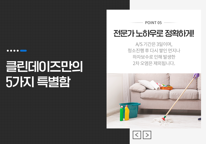 -A/S기간은 3일이며, 청소 진행 후 다시 쌓인 먼지나 하자보수로 인해 발생한 2차 오염은 제외됩니다.