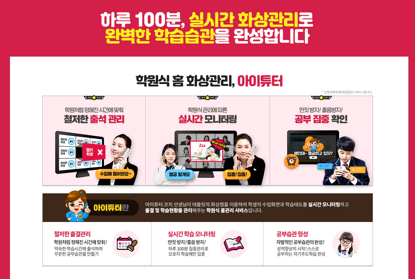 - SNS, Youtube, 게임 등 학습 유해요소를 차단하여 능률적 학습환경 구축