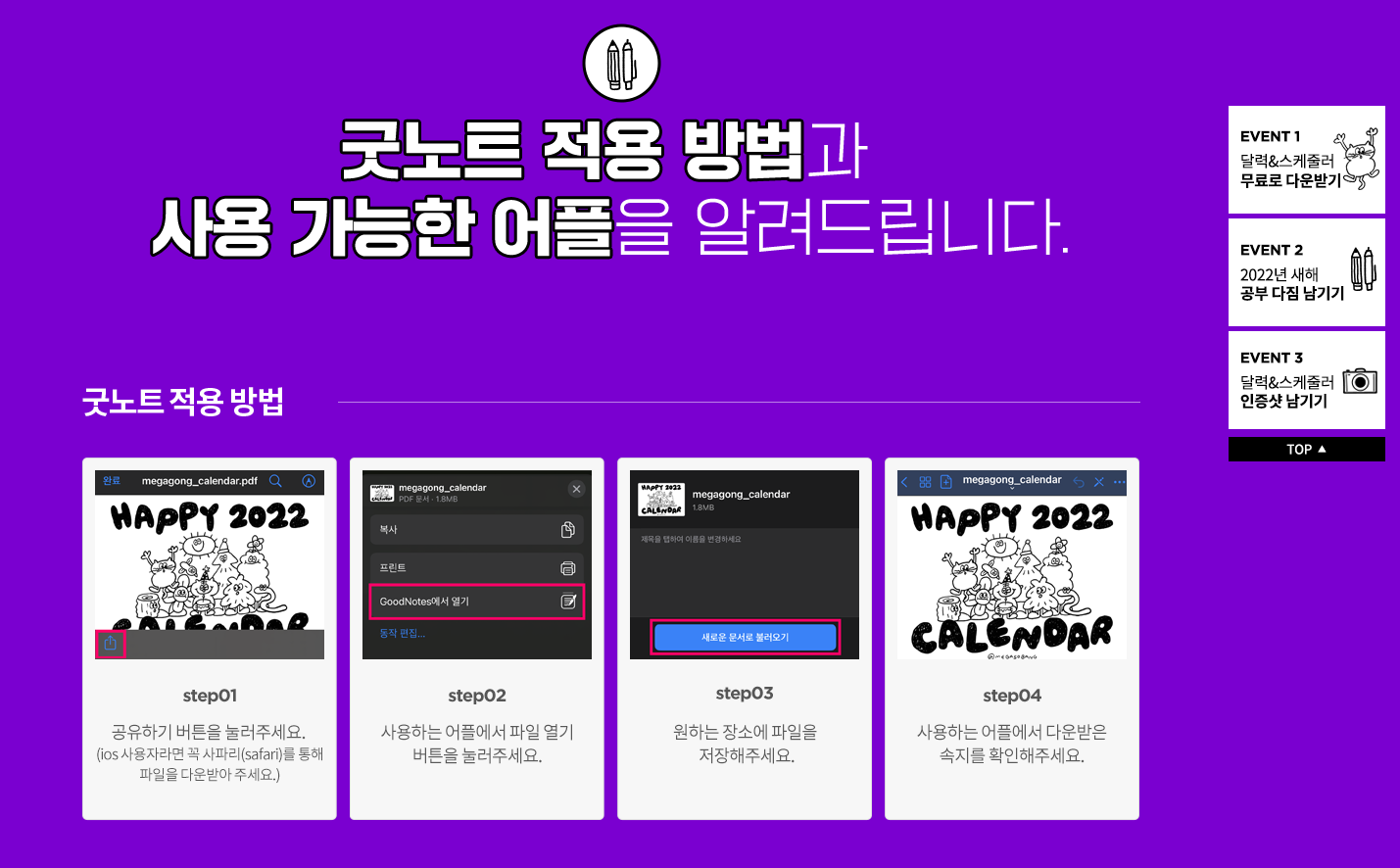 메가 공무원 공시생 굿 노트 달력 % 스케줄러 무료 배포 됩니다. 많은 신청 바랍니다.