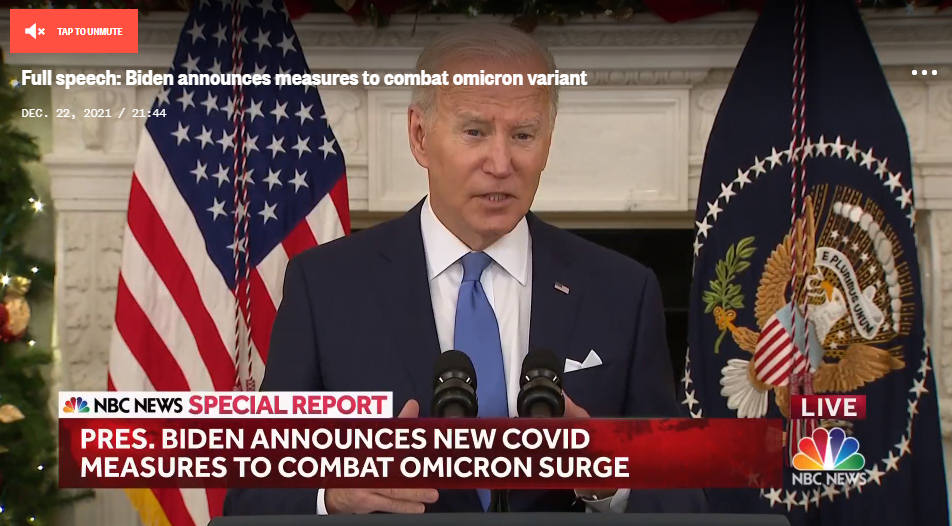 크리스마스 코비드가 급증하고 Build Back Better 계획이 실패하여 바이든 대통령이 새로운 단계로 이동했습니다.