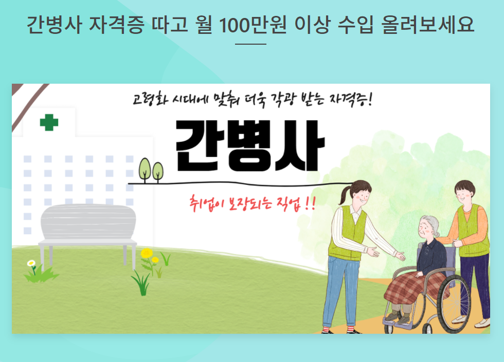 간병사 자격증 따고 월 100만원 이상 수입 올려보세요