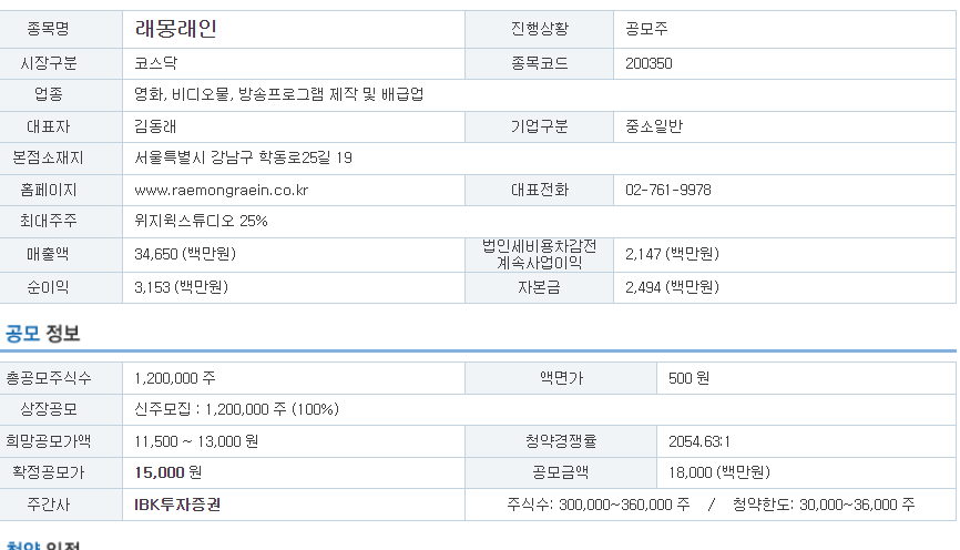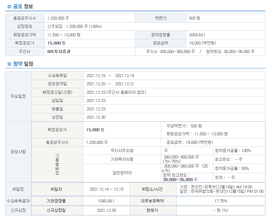 청약 경쟁률 2,054.63 : 1 (경쟁률 높은 편입니다. 높다고 좋은 주식은 아닙니다.)