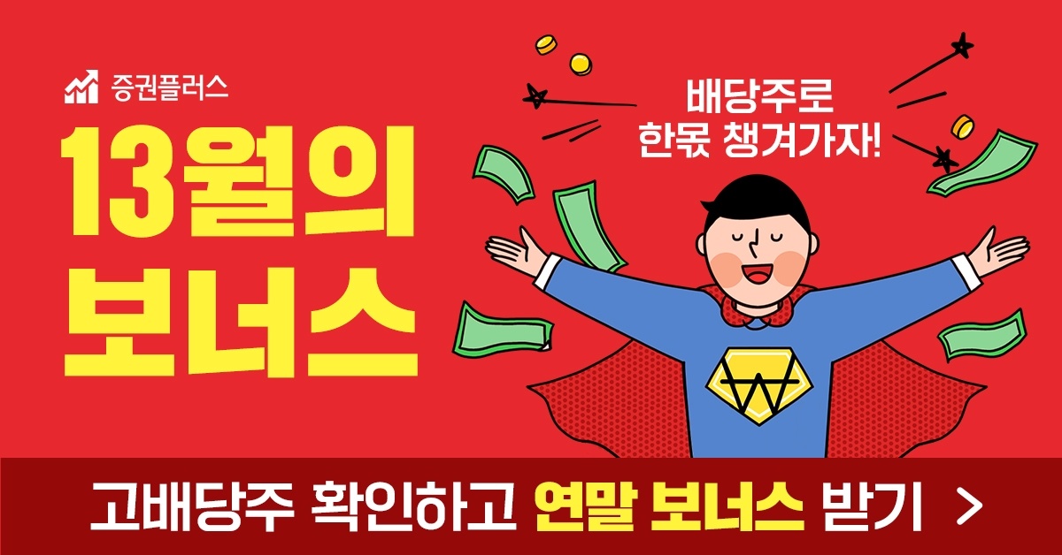 연말은 배당주의 계절! 13월의 보너스를 기다리고 있다면?! 바로 지금이 기회!! 증권플러스에서 나에게 꼭 필요한 고배당주 정보만 모아 확인해보세요! #증권플러스란? - 전국 500만 주주가 선택한