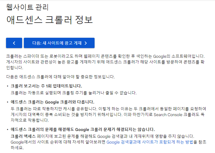 크롤링은 애드센스 크롤러에 의해 자동으로 실행 됩니다.