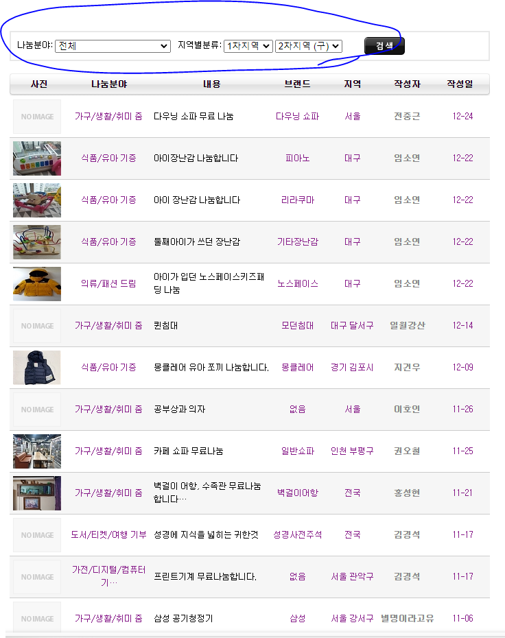 나눔 분야별, 지역별 구분하셔서 당근*켓 못지 않게 알뜰하게 살아 갑시다.~