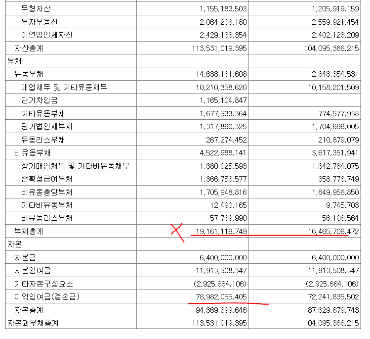 이익잉여금이 많을 줄 알았는데 많지는 않네요...대신 부채가.....헉!!!