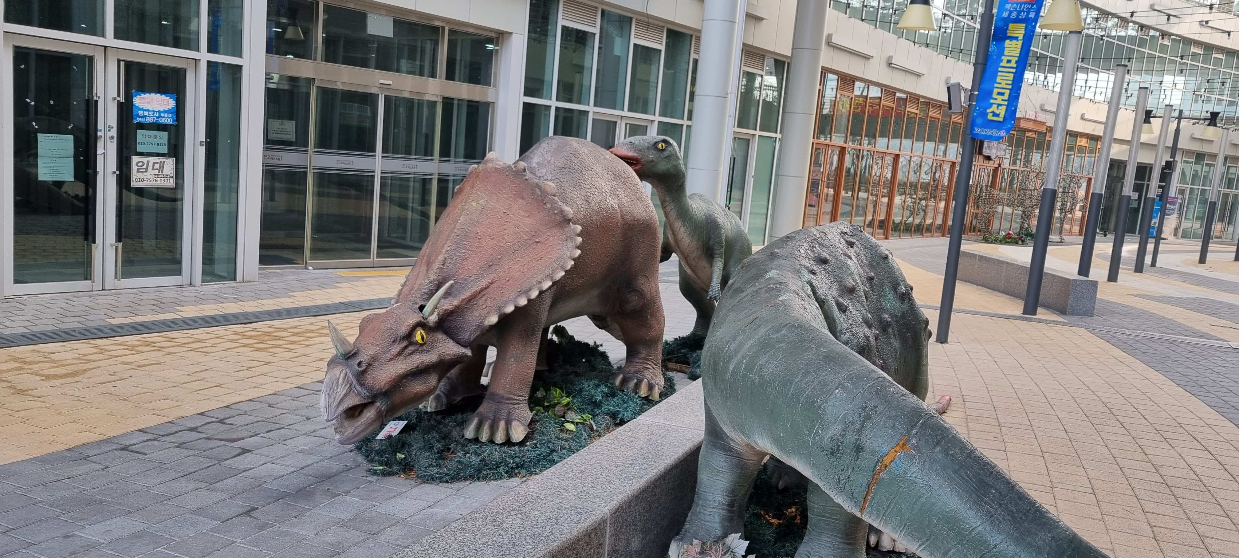 중앙에 보이는 건물이 쇼핑몰 입니다. 안에는 아이들을 위해 공룡들이 있습니다.