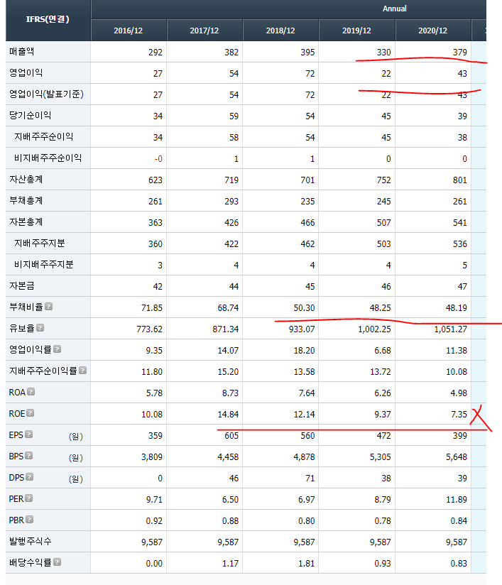 2020년에 코로나로 인해서 실적이 조금 낮아졌네요. 부실 실적은 반영된 것 같습니다.