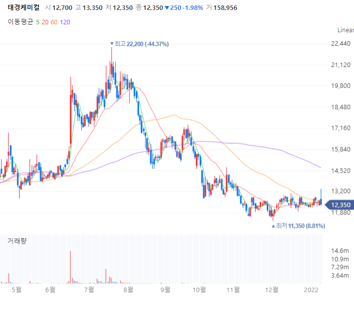 태경케미컬 또한 20년 실적을 넘겼습니다. 아주 좋은 실적으로 위에 종목과 같이 큰 거래량으로 우상향 될 것 같습니다.
