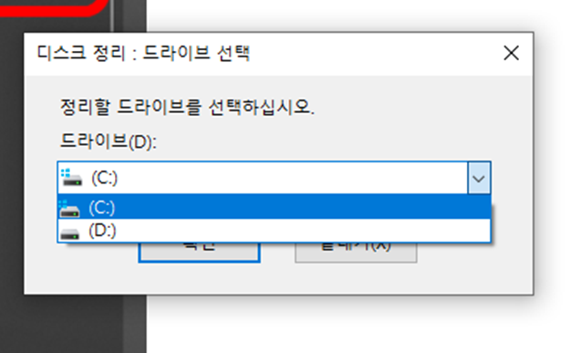 클릭하면 C 드라이브를 정리 할 것인지, D 드라이브를 정리할 것인지 물어 봅니다.