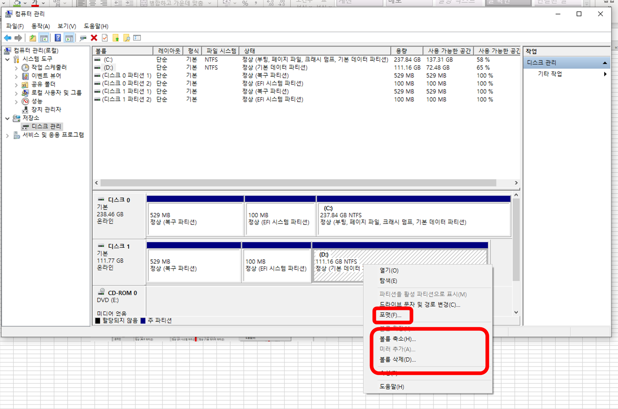 [컴퓨터 파티션] 드라이브 나누기, 합치기