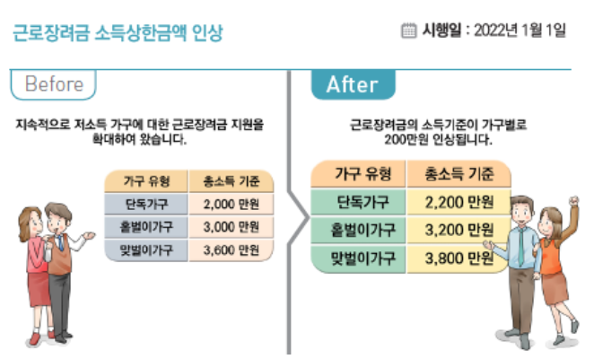 | 근로 장려금 소득 상한금액 인상 (0) | 2022.01.15 |
