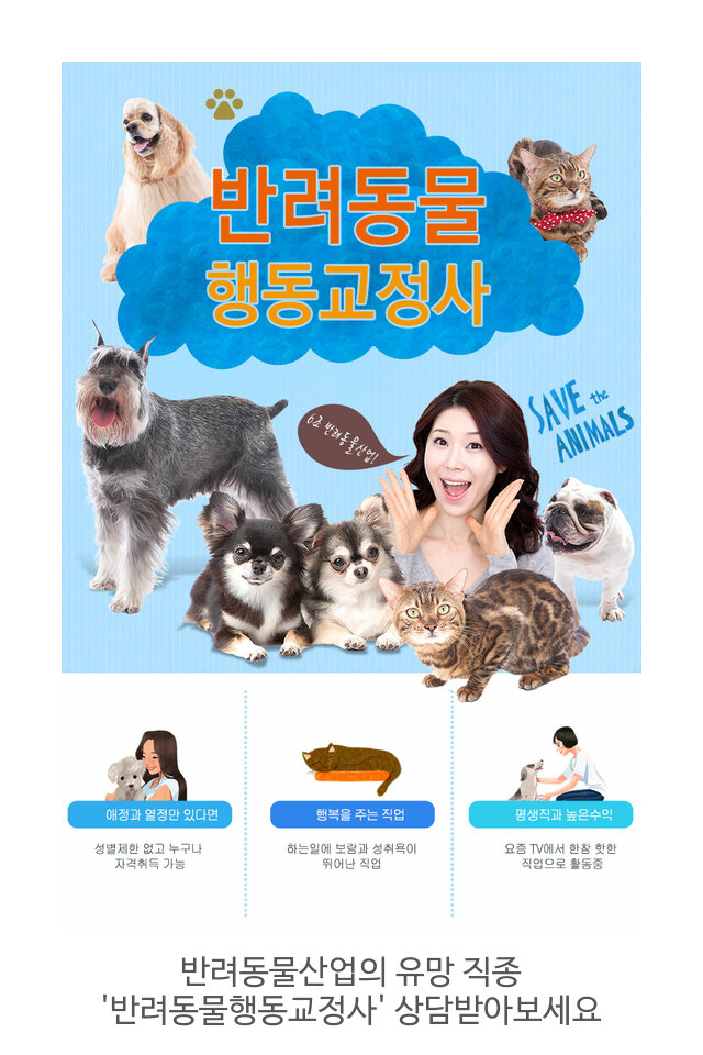 반려동물산업의 유망 직종 '반려동물행동교정사' 상담받아보세요