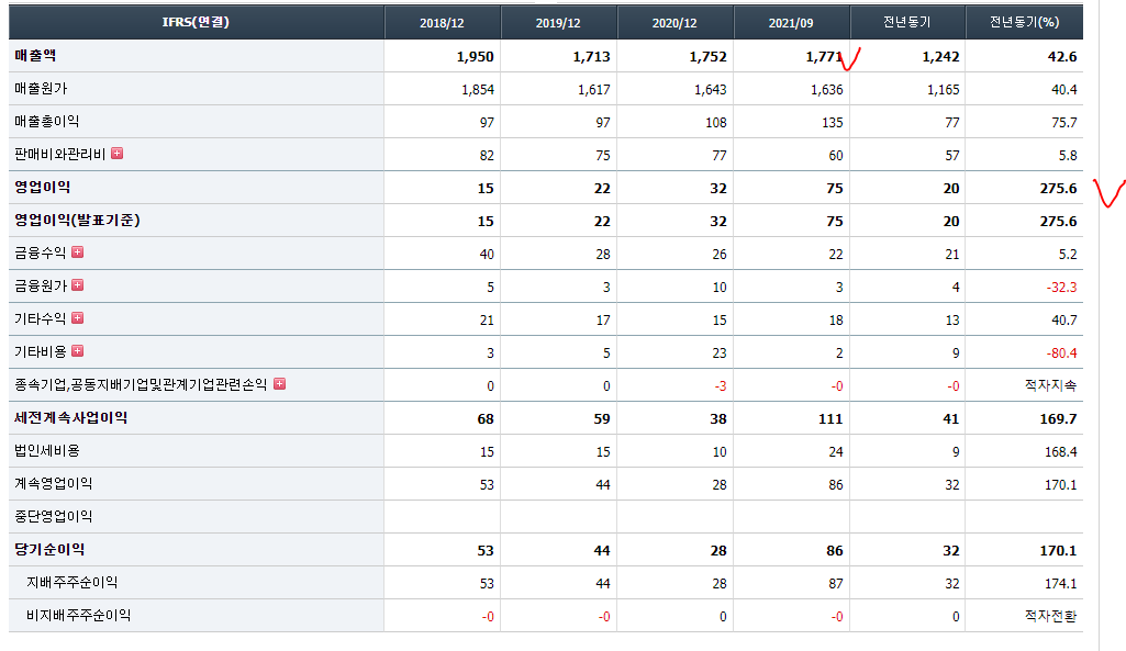 - 2021년 9월 전년동기 대비 연결기준 매출액은 42.6% 증가, 영업이익은 275.7% 증가, 당기순이익은 174% 증가. 매출 증가 및 각종 비용 절감으로 수익성이 개선되었음. 따라서 영업이익과 당기순이익 모두 증가함. 가축분뇨 위탁처리 계약농가가 확보되어 있어 원료 확보측면에서 유리하며, 액비처리시설을 이용한 고품질의 액비생산 후 친환경 액비의 살포가 가능함.