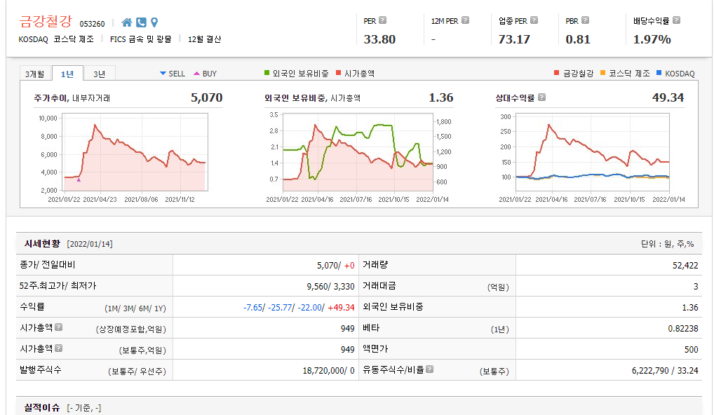 - 동사는 철강재 판매업, 자동차 및 전자부품 제조 및 판매업 등의 목적으로 1977년 설립되었으며, 2002년 코스닥증권시장에 주식을 상장함. 동사는 자동차, 가전, 건설, 산업용기 등의 산업원자재인 코일을 자동화 기계설비를 갖추고 수요자가 원하는 규격으로 전·절단 가공하여 공급하는 것을 주요사업으로 영위하고 있음. 동사는 포스코의 판매점으로서 전량 포스코로부터 원재료(코일)를 공급받아 가공하여 판매함.